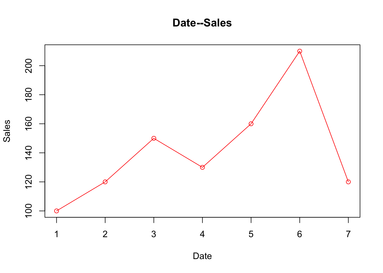Sales = c(100,120,150,130,160,210,120)