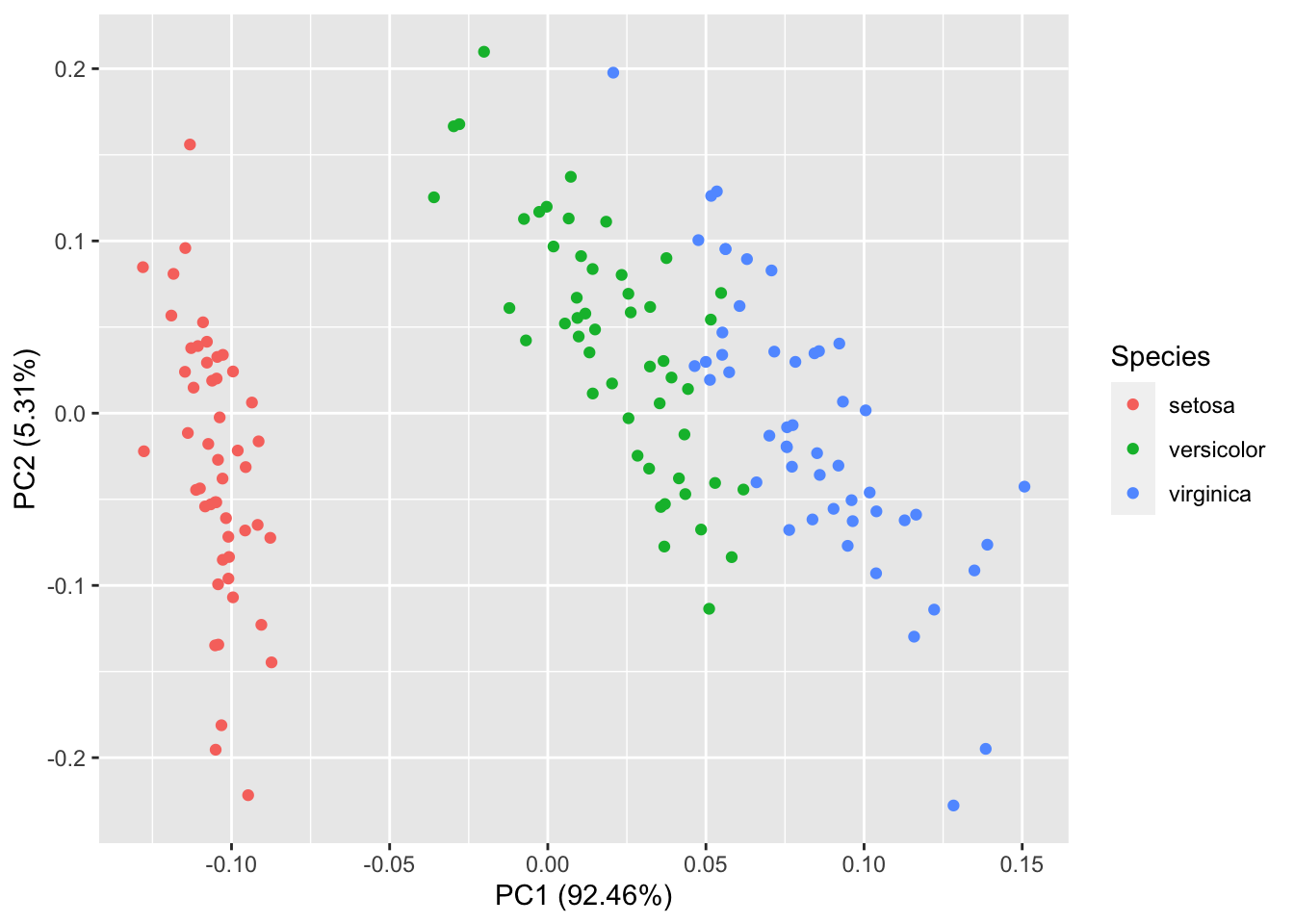 autoplot(model, data = iris, frame = TRUE, frame.colour = 'Species')